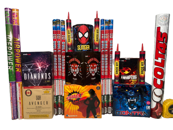 Everything you need for the perfect backyard Fireworks show. Packaged assortment includes Roman Candles, Barrage, Sound Shells, large Mortar Shell and spectacular Cakes. Comes complete with a Recommended Firing Sequence--providing the order of ignition from first shot to dramatic grand finale!